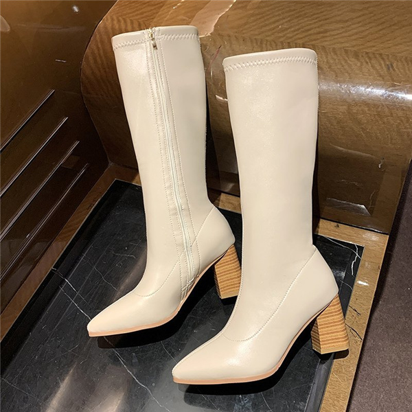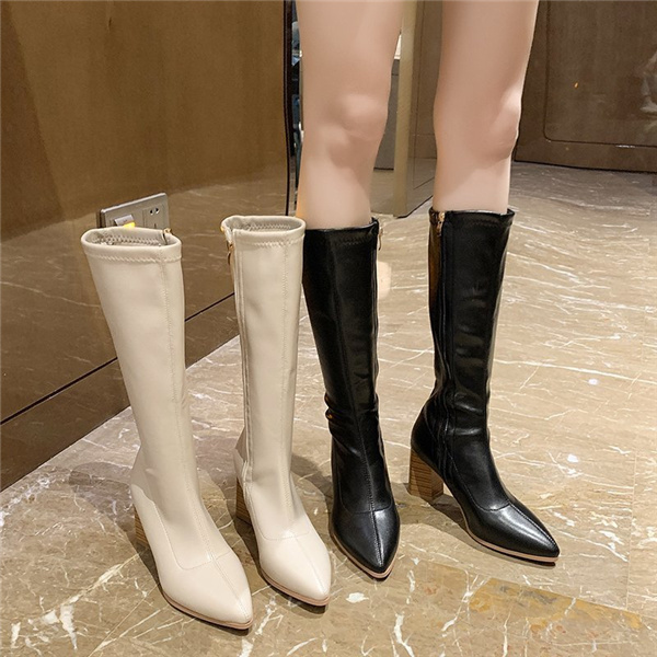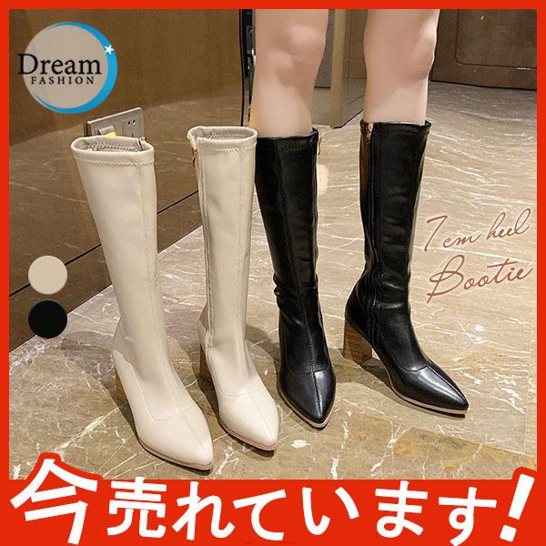 ロングブーツ レディース 美脚ブーツ 長靴 防寒 歩きやすい ロング丈 ハイヒール 履きやすい 薄手裏起毛 チャンキーヒール カジュアル 秋冬
