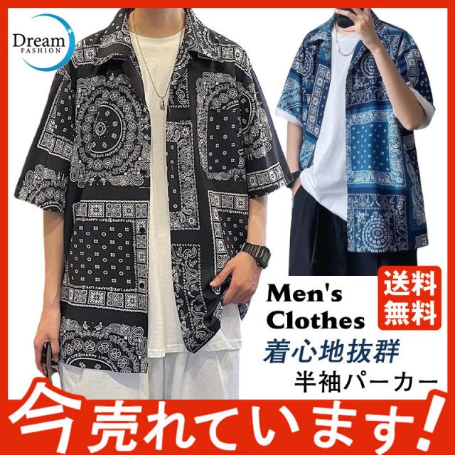 ジップパーカー メンズ 半袖 吸汗 速乾 五分袖 アロハシャツ 総柄 ストレッチ スポーツ スリム アウトドア 旅行 大きいサイズ 夏物 父の日