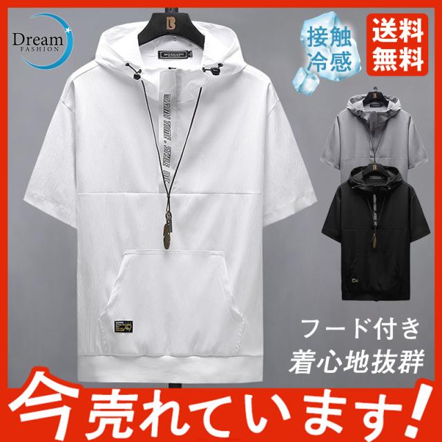 半袖パーカー メンズ 半袖 パーカーおしゃれ フード付き ドライ ストレッチ ビジネス スポーツ スリム アウトドア 旅行 大きいサイズ 夏物 父の日