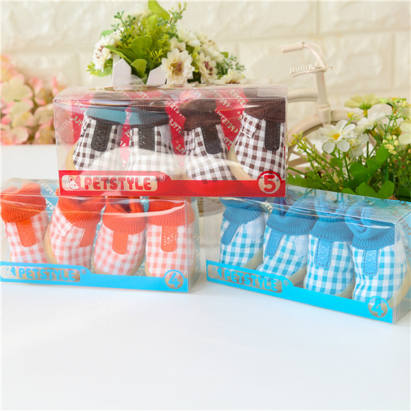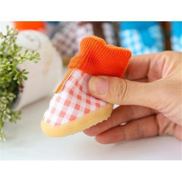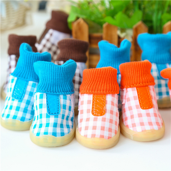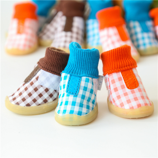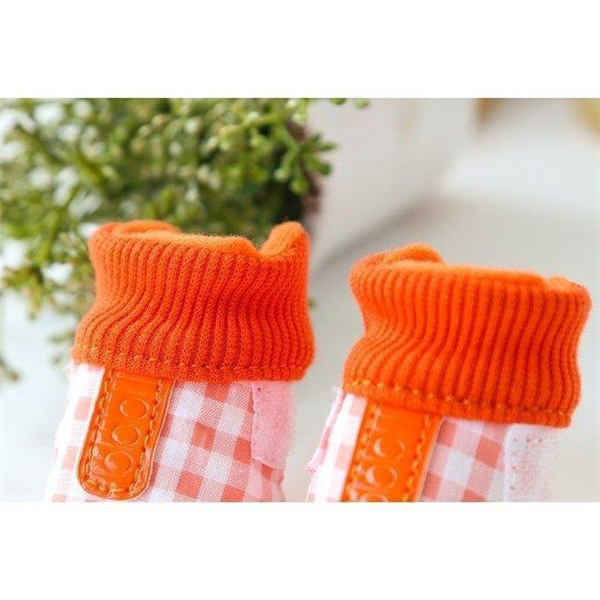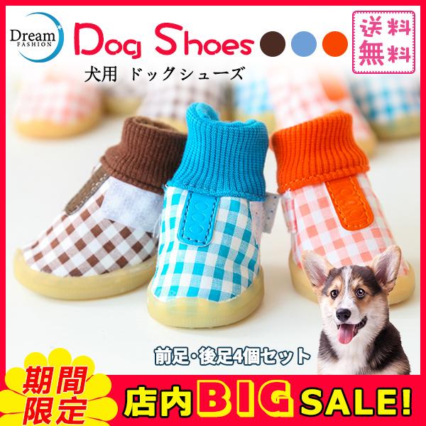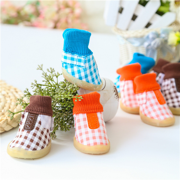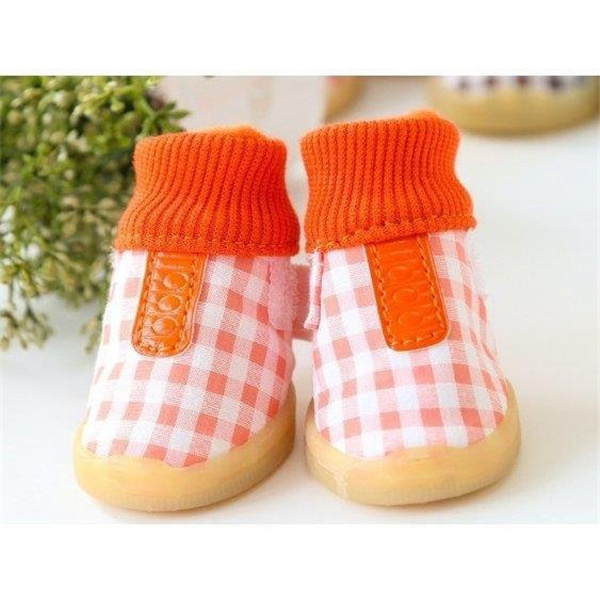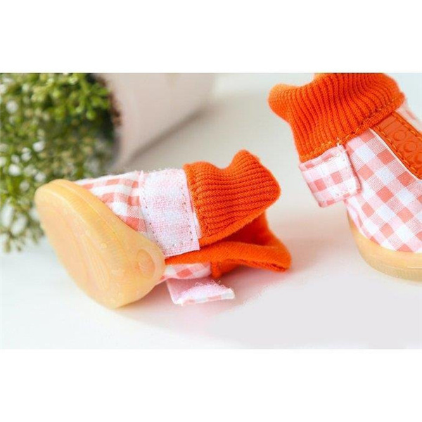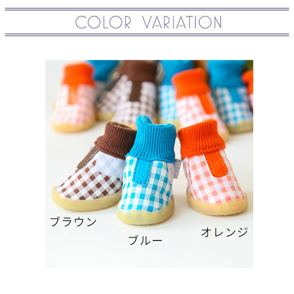 ペットシューズ ドッグシューズ 犬用 靴 ギンガムチェック マジックテープ 滑り止め おしゃれ かわいい オレンジ ブルー ブラウン お散歩 公園 お