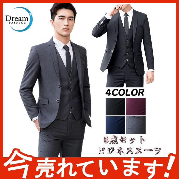 スーツ メンズスーツ ビジネススーツ スリムスタイル ベスト付き セットアップ スリーピース 3点セット 大きいサイズ 結婚式 パーティー 定番カラー
