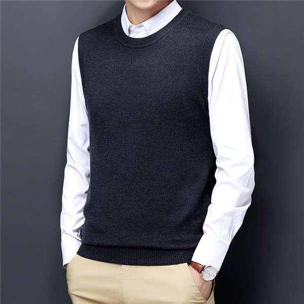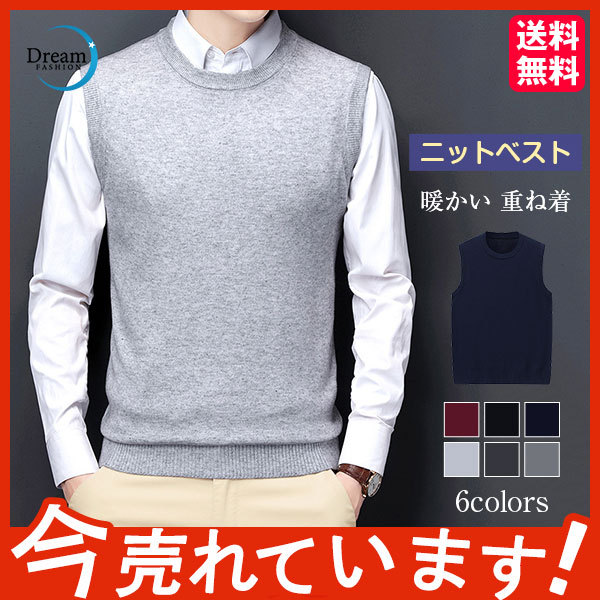 ニットベスト メンズ 秋冬 チョッキ ベスト アウター トップス ビジネス 通勤 クルーネック コーデ シンプル 重ね着 レイヤード 送料無料