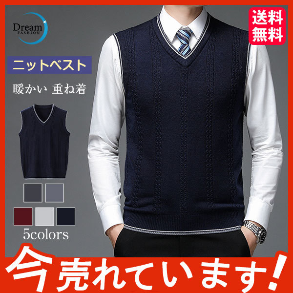 ニットベスト メンズ 秋冬 チョッキ ベスト アウター トップス ビジネス 通勤 Vネック コーデ シンプル 重ね着 レイヤード 送料無料 暖かい