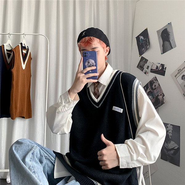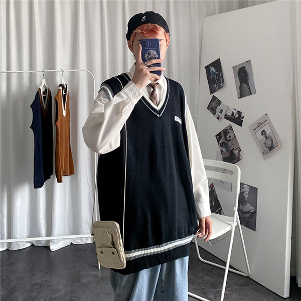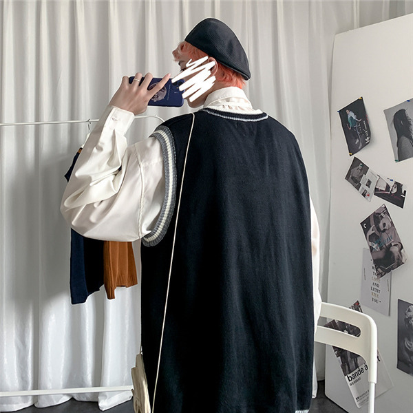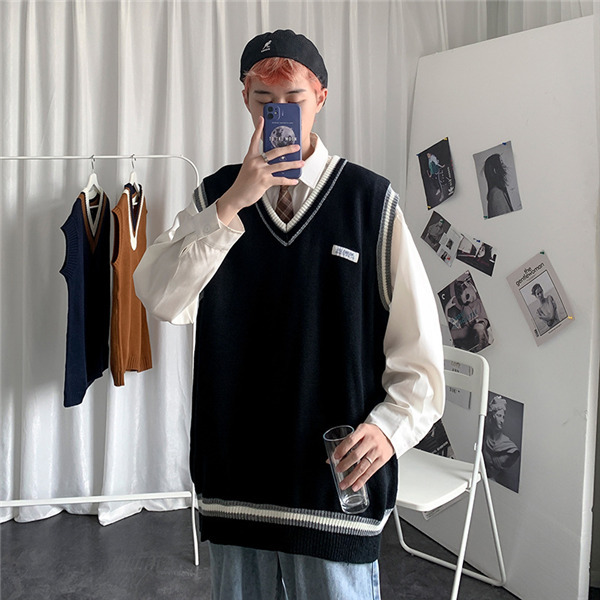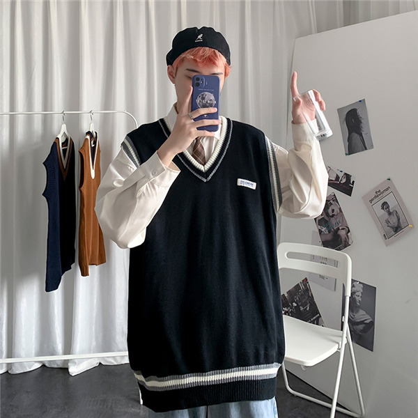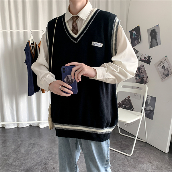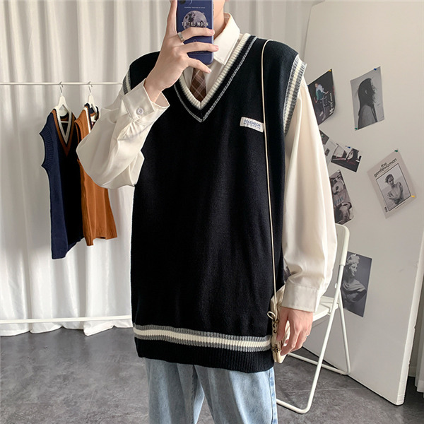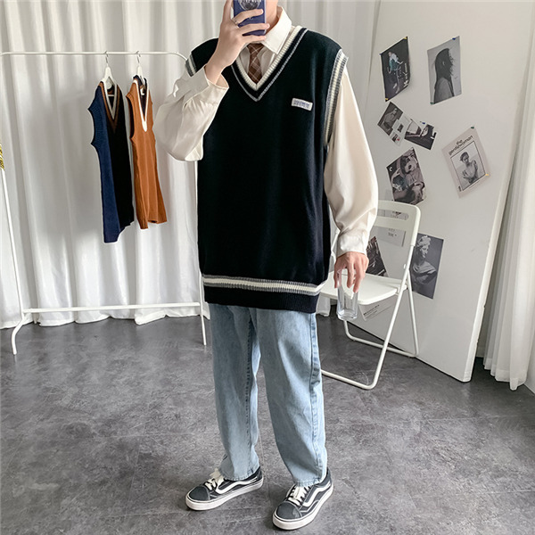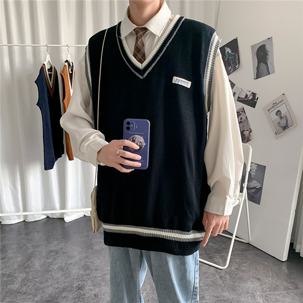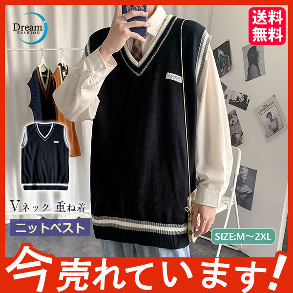 ニットベスト メンズ 秋 チョッキ トップス カジュアル プルオーバー ロング丈 カレッジスタイル Vネック ペアルック ゆったり 重ね着 おしゃれ