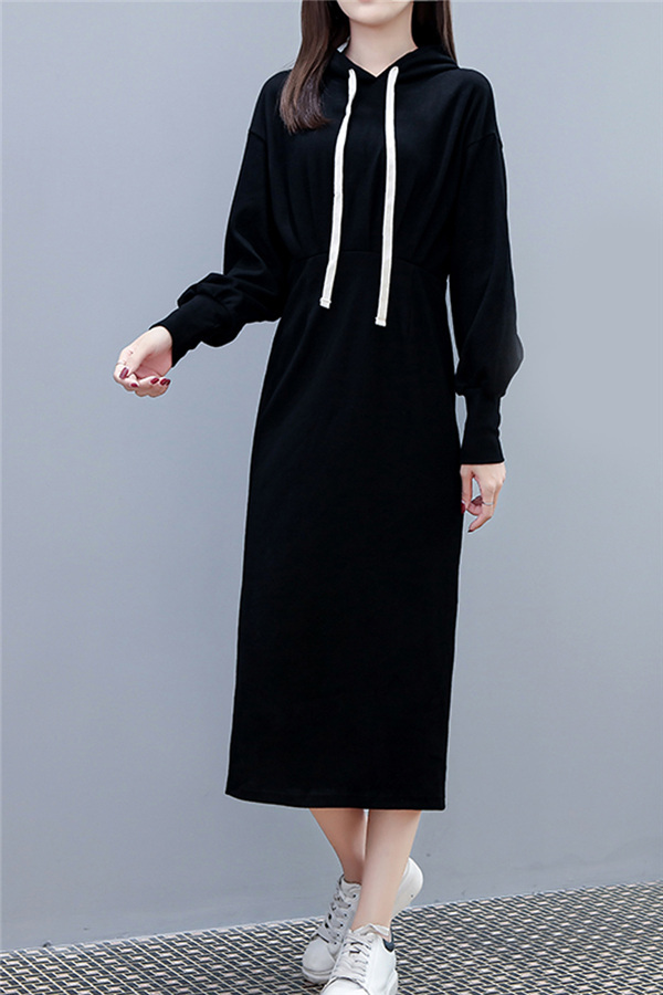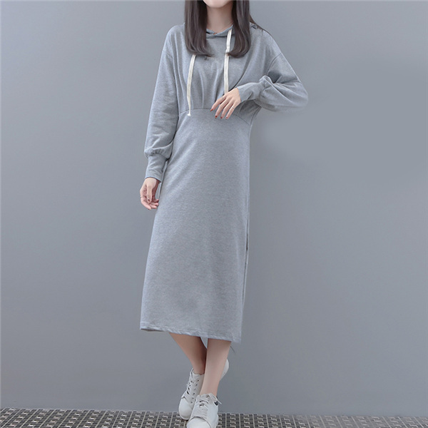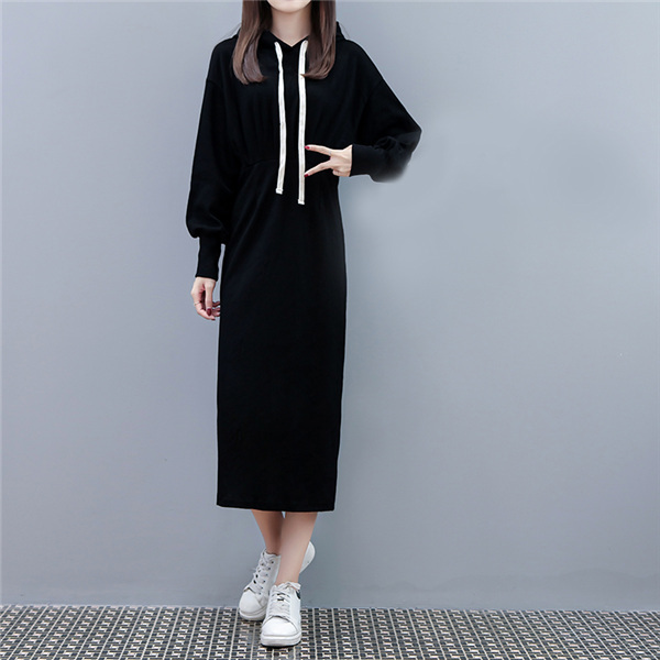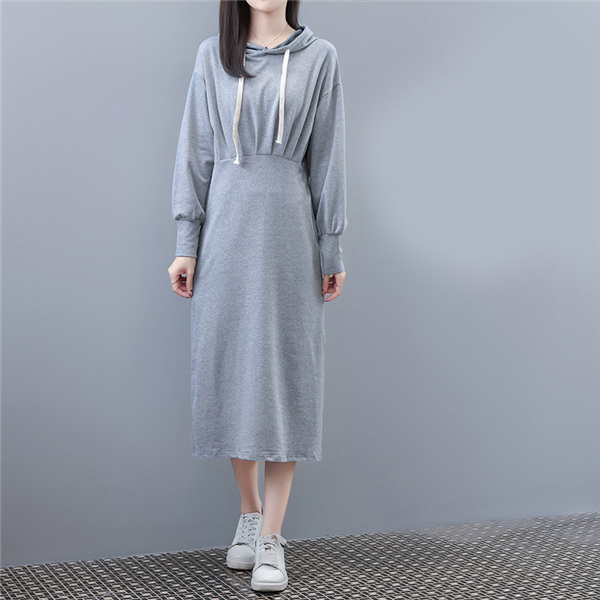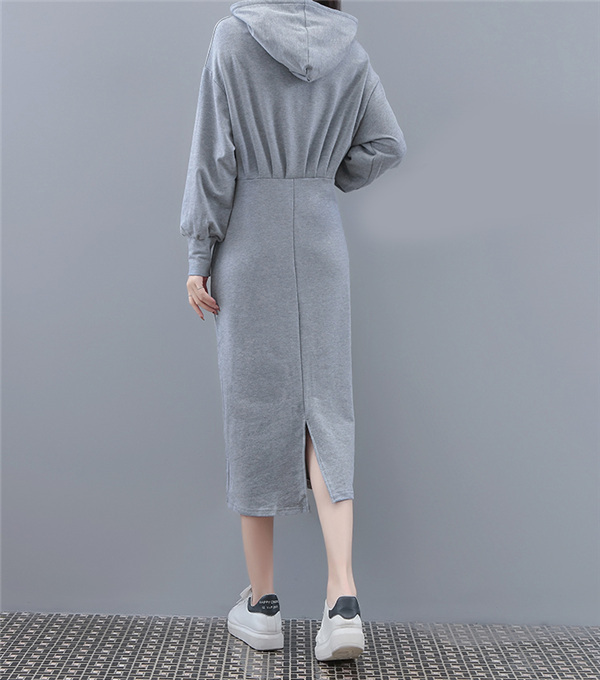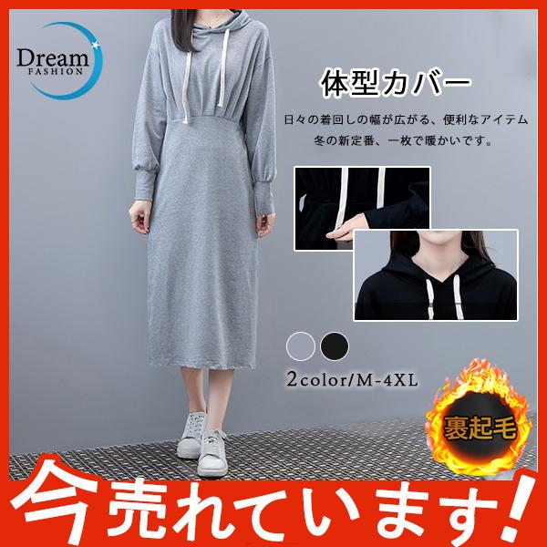 レディース パーカー 細身 裏起毛 フード付 カジュアル オシャレ マキシワンピース 着痩せ