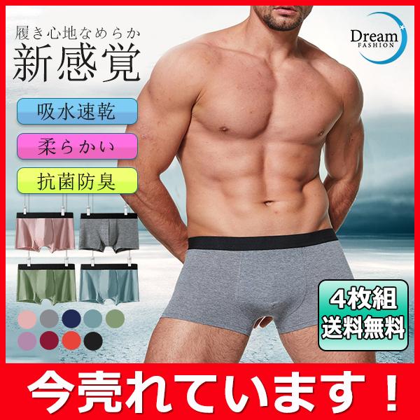 ボクサーパンツ 4枚 メンズ 下着 インナー リラックス コットン 通気性 解放感 薄手 涼しい アンダーウェア 快適 ストレッチ 柔らかい