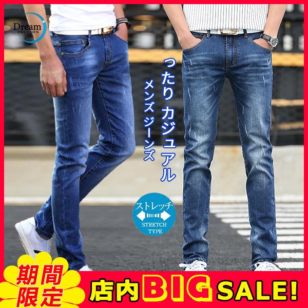 スキニーパンツ デニム パンツ メンズ 春秋 タイト フィット ボトムス ジーンズ ジーパン ロング丈 カジュアル イージーパンツ スリム シンプル