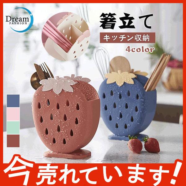 一部即納!イチゴ型 箸スタンド 箸立て カトラリースタンド かわいい キッチン収納 速乾 調理器具収納 多機能 フォーク収納 大容量 水切り お洒落 食器収納