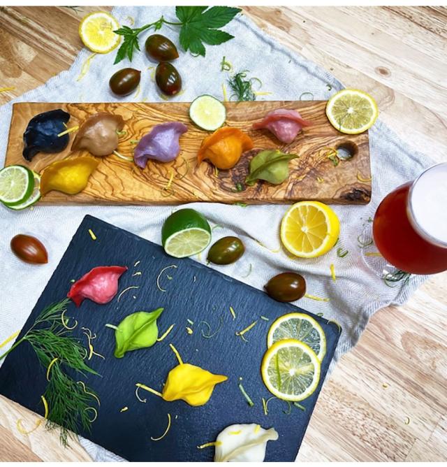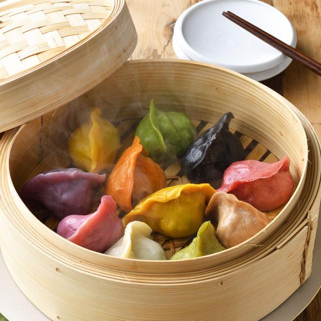 ヴィーガン向け、と引くなかれ。“野菜”に照準を合わせた餃子はユニークにして旨い。大豆ミートと国産野菜を基本に、オリーブオイルと海塩を使用。ピンクの餃子にはシイタケの旨み、赤にはキムチの酸味、黒にはネギ味噌のコクがギュッ! それぞれ素材の旨さと食感、味付けの妙に圧倒される。皮は厚めでシコシコ。何もつけなくても抜群だ。