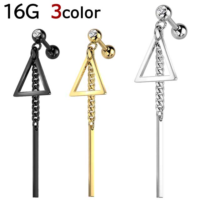 ボディピアス 16G ストレートバーベル トライアングル 三角 バー チェーン 軟骨ピアス 耳ピアス ヘリックス 316L サージカル ステンレス