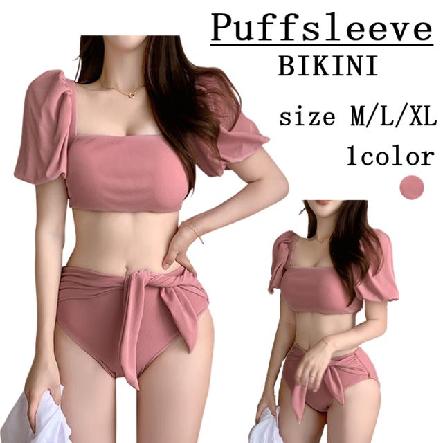 パフスリーブビキニ 水着 みずぎ パフスリーブ ビキニ 2点セット レディース 水着 夏 スイムウェア 半袖 パフスリーブリボンビキニ ビキニ リボン ハイウエスト フェミニン 体型カバー セクシー ガーリー 海 プール