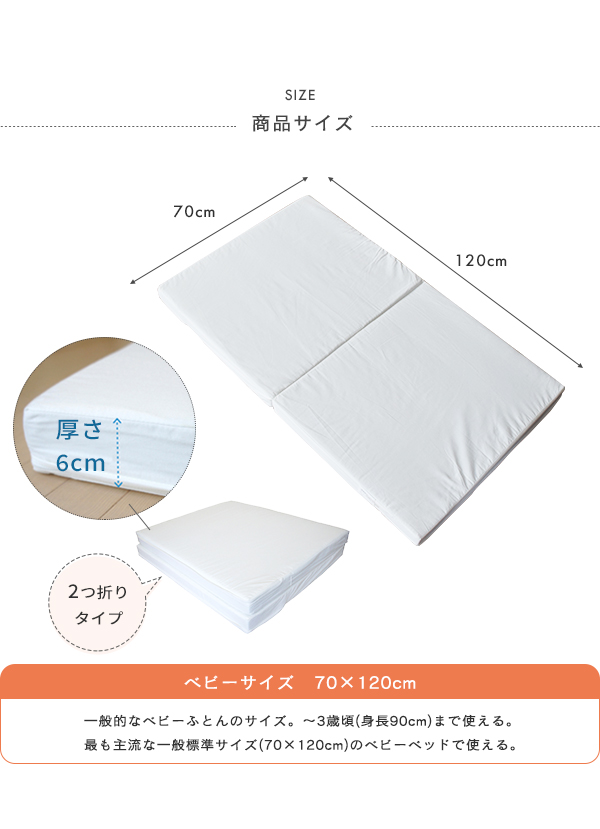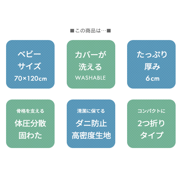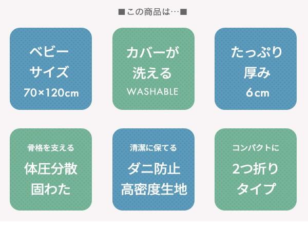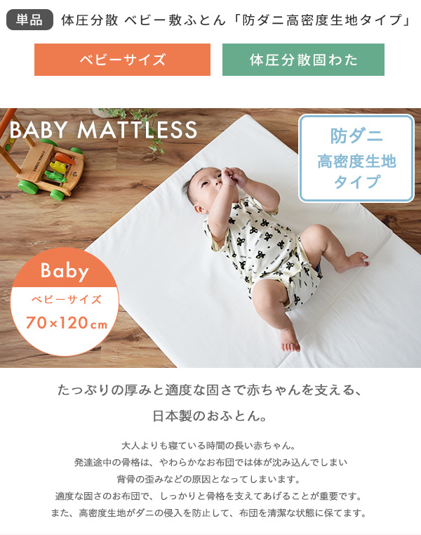 防ダニ生地 へたりにくい体圧分散ベビー敷ふとん ベビーサイズ 70×120cm