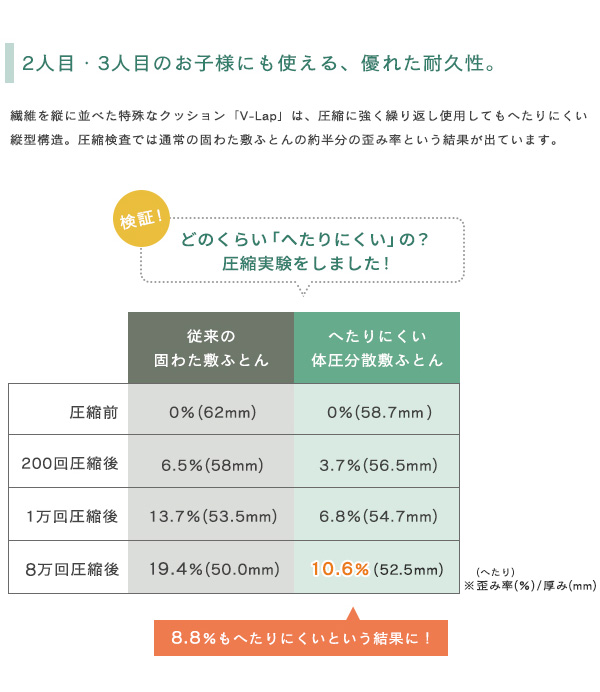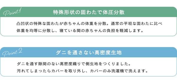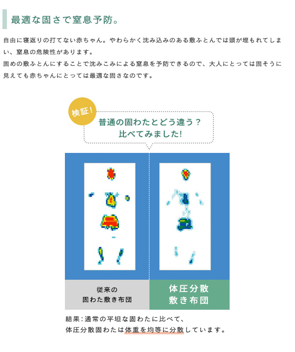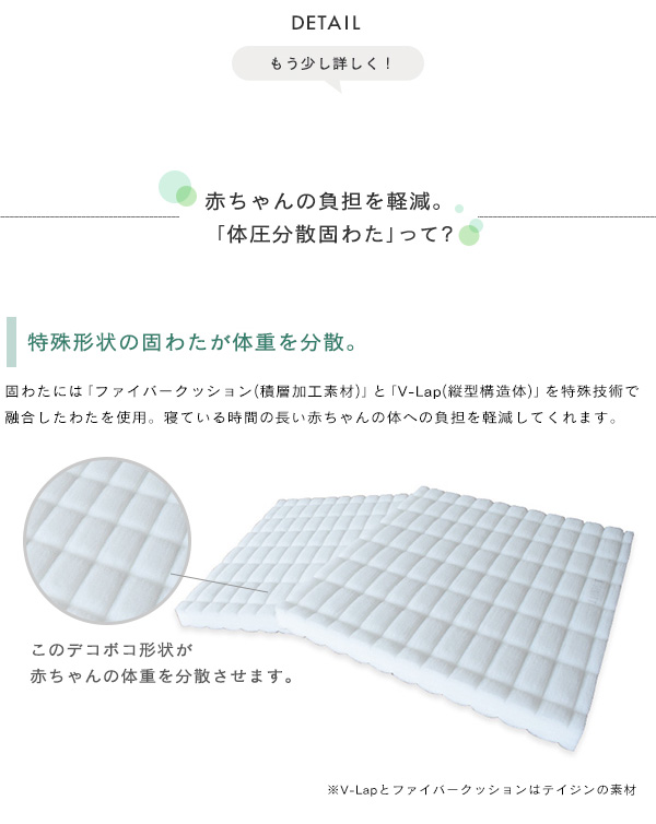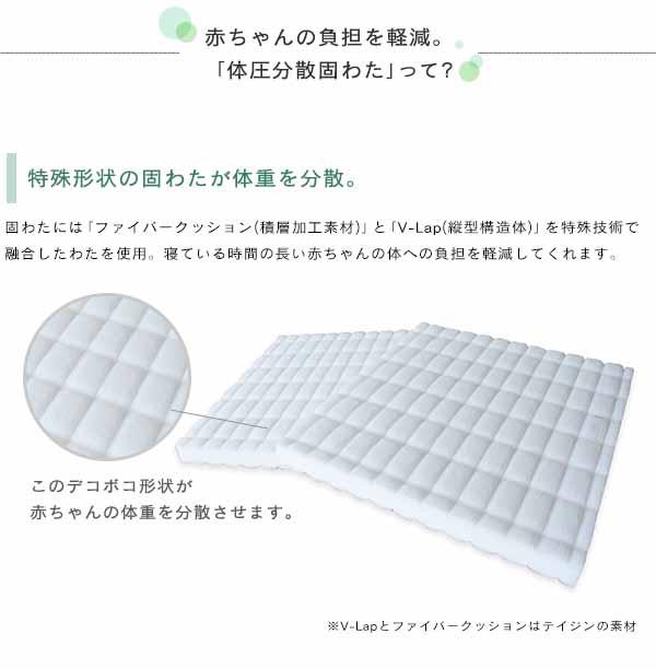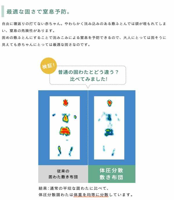 特殊な凸凹状の固わたが赤ちゃんの体重を分散してくれる敷布団。
