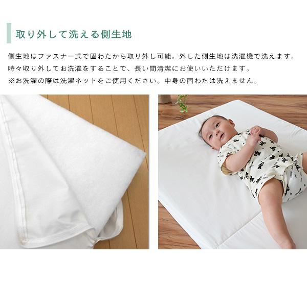 カバーは取り外して洗濯可能です。一般的なベビー布団サイズ。