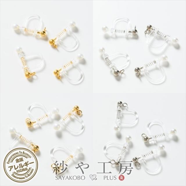 - 金属アレルギーでノンホールピアスを探してましたがクリップタイプだと落下が心配なので、こちらのバネ式を購入しました。後ろがパールになっているのもいいですね。数も多量には要らないので、この数が丁度いいです...