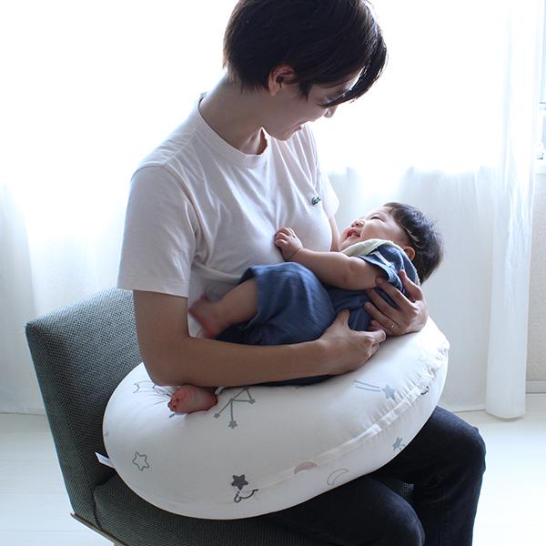 三日月型の抱き枕にもなる大きめの授乳クッション。