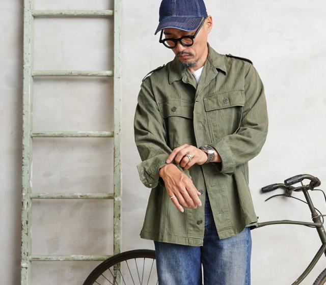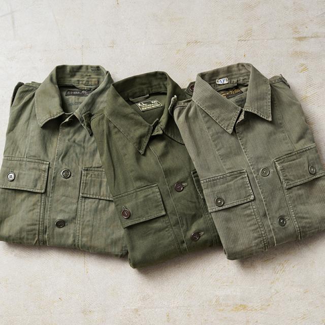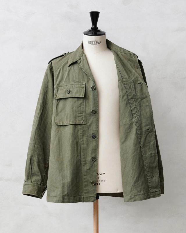 オランダ軍からHBT(ヘリンボーンツイル)を使用したフィールドシャツジャケットが入荷しました。米軍のM-43 HBTジャケットのポケットのディテールや、1950年代のM-47 HBTユーティリティシャツのボタンなどを彷彿とさせるデザインのシャツジャケットです。年代は1960年代から1970年代が多く、ヴィンテージと呼んでも差し支えない様々な年代のアイテムが入荷しています。ヘリンボーンツイルコットンが100%使用されたこちらのシャツジャケットは、古いヴィンテージアイテムに見られるようなヘリンボーンツイル特有の綺麗な縦落ちの縞模様が浮かび上がった、アタリの出た質感のHBT。好きな方にはご理解いただける抜群に雰囲気の良い素材感です。これからの経年変化も楽しみなヴィンテージアイテムです。