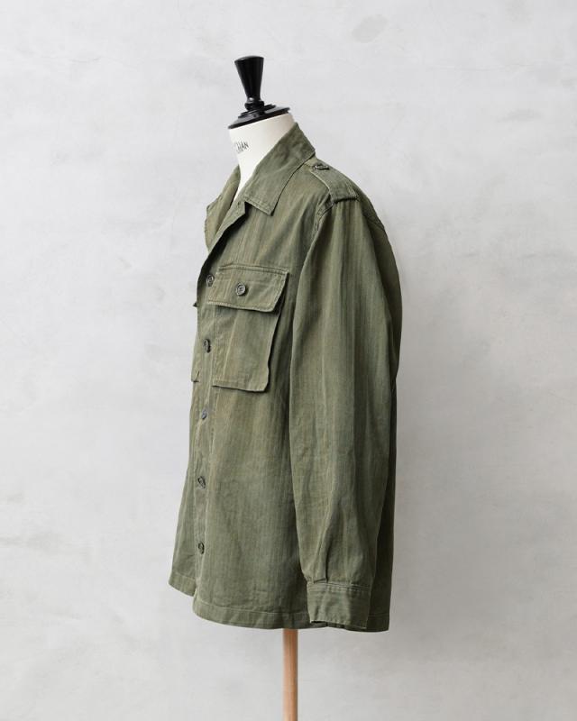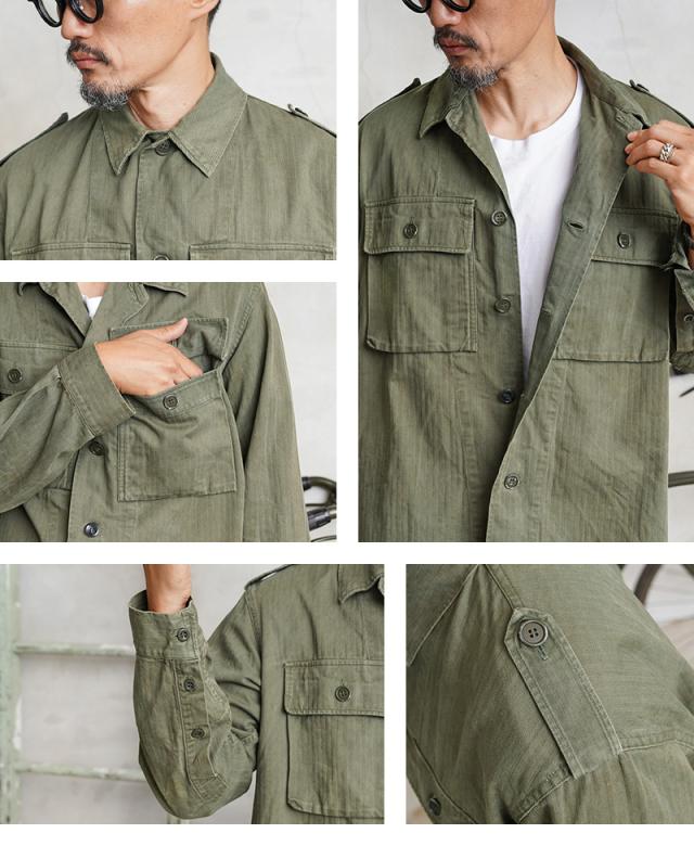 実物 USED オランダ軍 HBT(ヘリンボーンツイル)フィールド シャツ ジャケット ボタン袖【Cx】【I】|ミリタリージャケット ワークジャケット メンズ アウター 軍モノ 軍放出品 古着 ヴィンテージ おしゃれ オリーブ 大きいサイズ