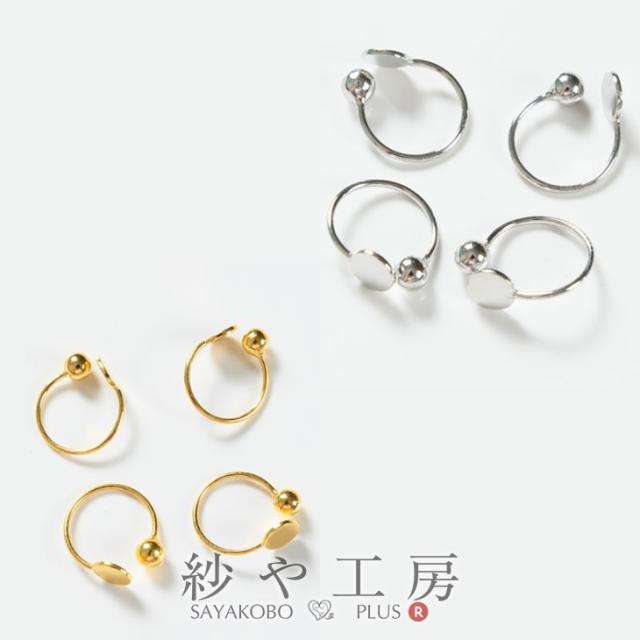 イヤリングパーツ イヤーカフ 4mm平皿付 【選べる2色】 10.5mm 2ペア ノンホールピアス 金属アレルギー対応 約1.1cm アクセサリーパーツ