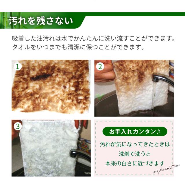 【汚れを残さない】吸着した汚れは水で簡単に洗い流すことができます。タオルをいつまでも清潔に保つことができます。