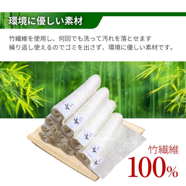 【環境に優しい素材】竹繊維を使用し、何回でも洗って汚れを落とします。また、燃える素材なので普通ごみで処理でき、環境に優しい素材です。