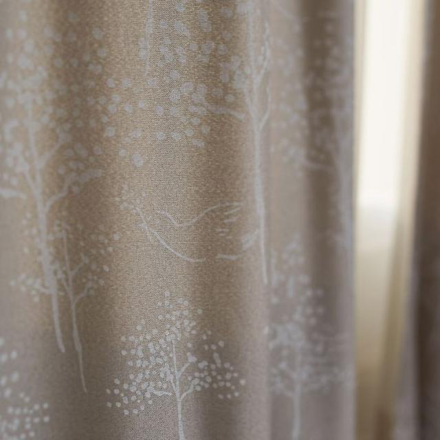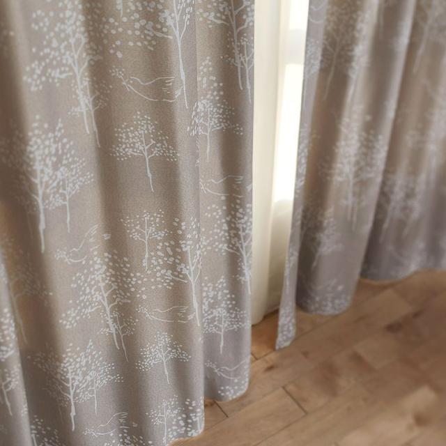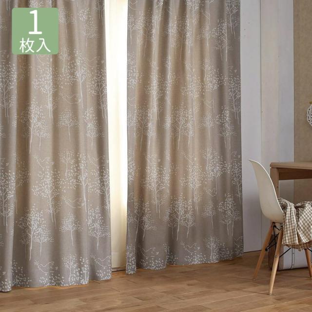カーテン 遮光 3級 幅100×丈135cm (1枚入)鳥 森 植物柄 腰高窓 100×135 日本製 ナチュラル お洒落 おしゃれ 丸洗い 洗える ウォッシャブル 形状記憶加工 一人暮らし 既製 リビング 新居 新築 引っ越し 国産 グレー ベージュ グレージュ