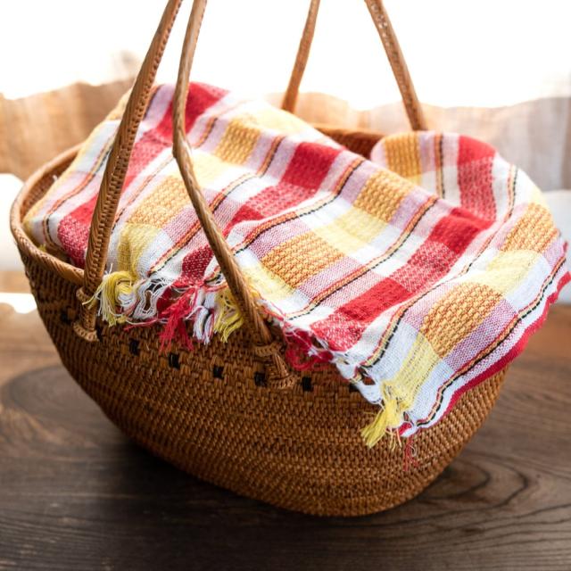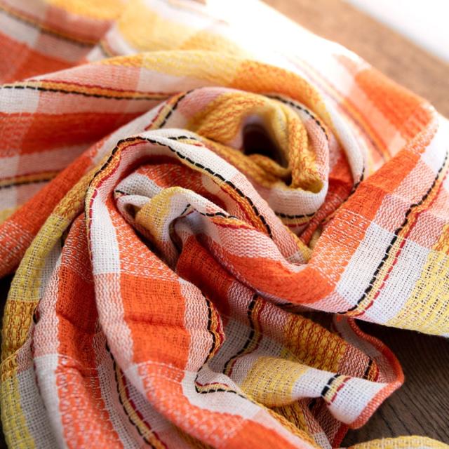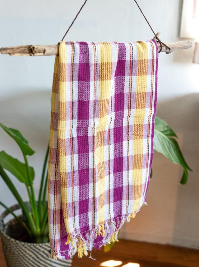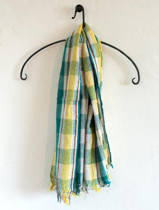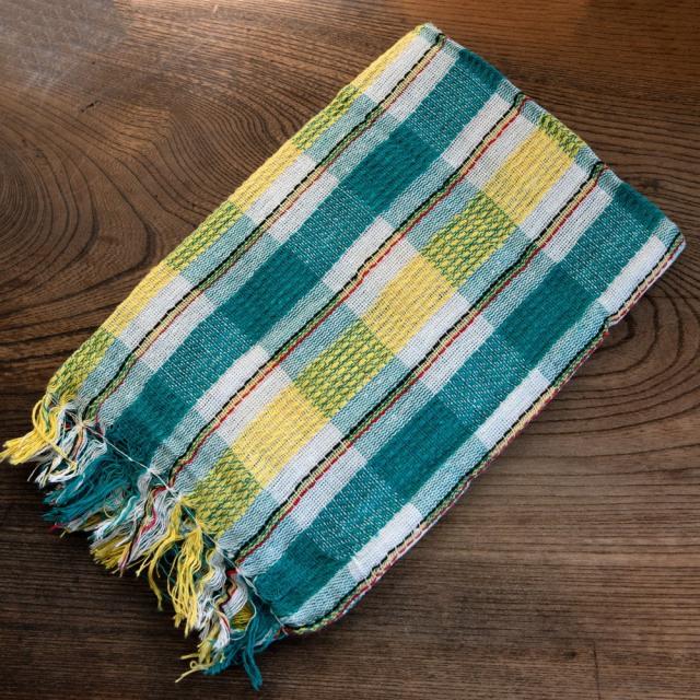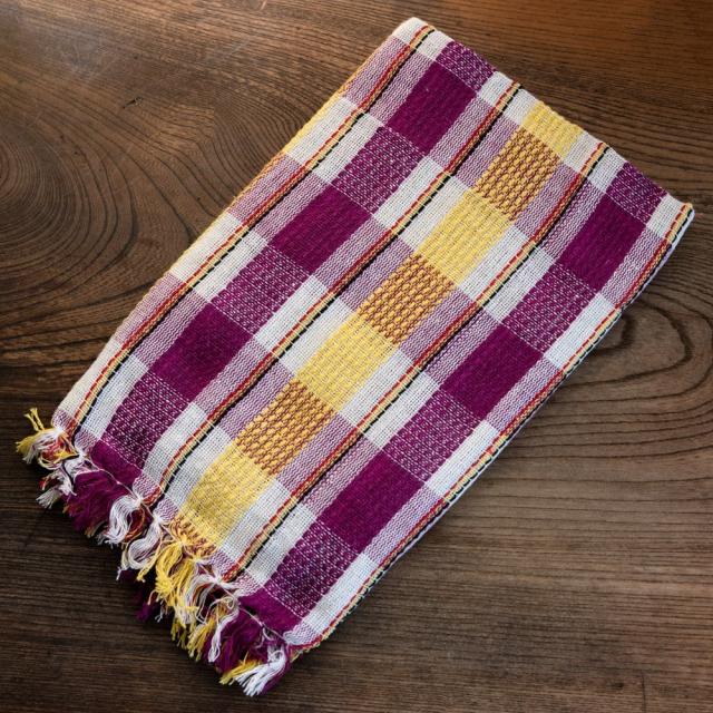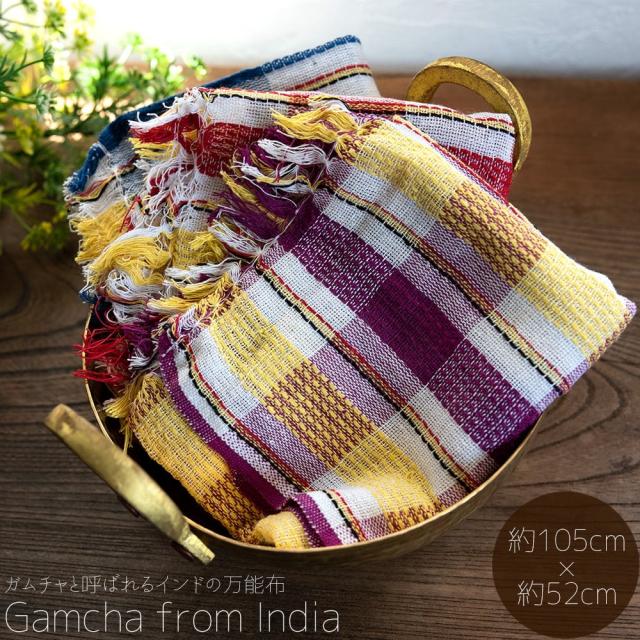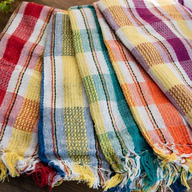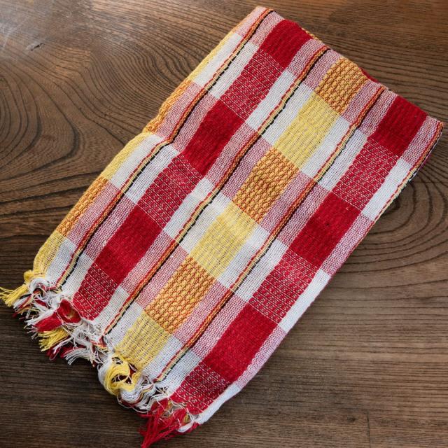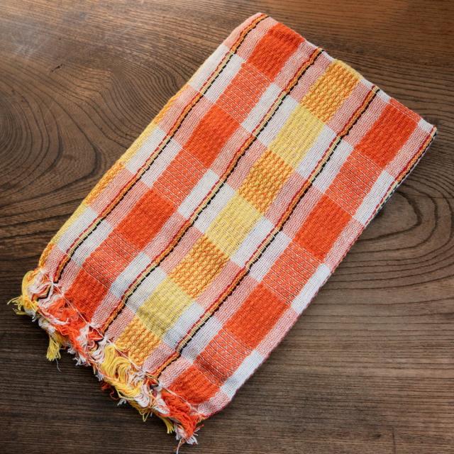 インドの生活感あふれる布、ガムチャと呼ばれる万能布で日本で言う手ぬぐいのような布です。シンプルでざっくりと編まれた鮮やかなチェック柄が可愛く、様々な用途にお使いいただけます。 現地では、祭壇に使用したり、頭に巻いたり、手拭きにしたり。色やサイズに合わせて何にでも◎ざっくりと編まれているから速乾性にも優れており、使えば使うほど、洗えば洗うほど生地が馴染んで柔らかくなってきます。お皿を拭いたり、目隠し布やランチョンマットのように広げて使用しても◎また、大きめサイズならクーラーの風よけや日焼け防止にも使用できます。