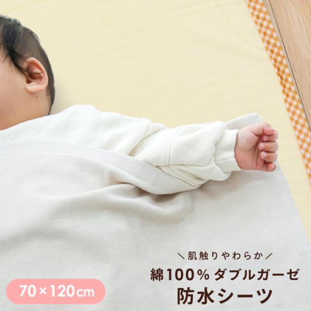 【同時購入限定】【特別割引】防水シーツ 70×120cm ベビー レギュラーサイズ ダブルガーゼ 綿100% 無地 クリーム/グレー 四隅ゴム付き