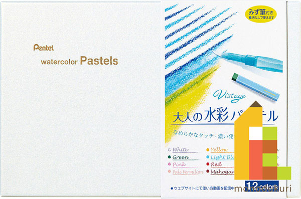 ぺんてる 大人の水彩パステル 12色 GHW1-12 クレヨン クレパス パステル 色鉛筆