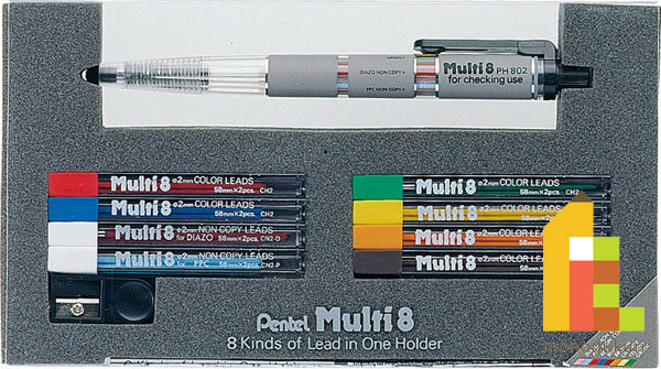 色芯6色、ノンコピー芯2種内蔵のデザイン編集に適したタイプのホルダーシャープペンシルです。