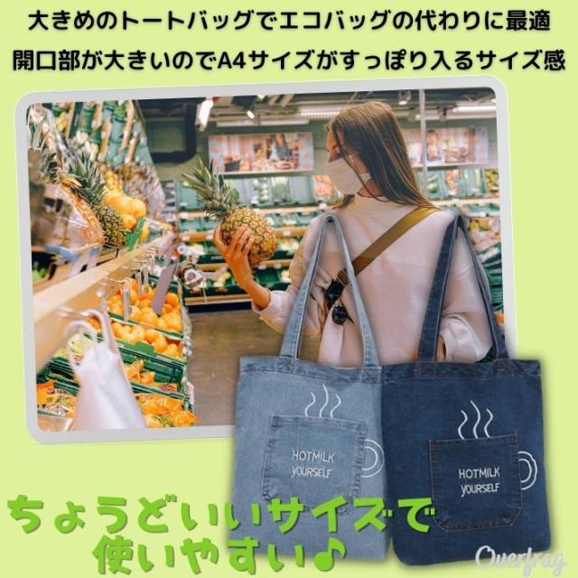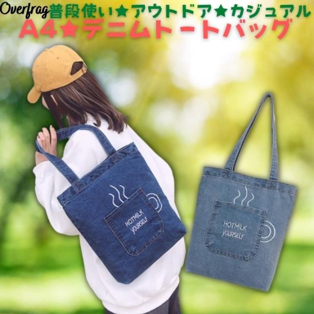コーヒーカップ ポケット デニムトートバッグ トート デニム トート バッグ 無地 A4 ロゴ コーデ 大容量 大きいサイズ 肩がけ ショルダー メンズ レディース ユニセックス 通勤 通学 普段使い お出かけ コンビニバッグ エコバッグ かわいい おしゃれ プレゼント ポイント消化