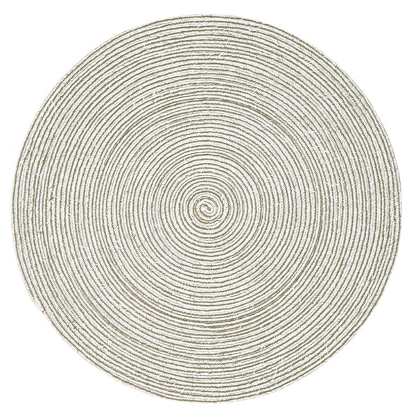 インド綿 ラグマット/絨毯 〔グリーン&ホワイト 直径約90cm 円形〕 綿100% ホットカーペット 床暖房可 ブレイド 〔リビング〕 【北海道・沖縄・離島配送不可】