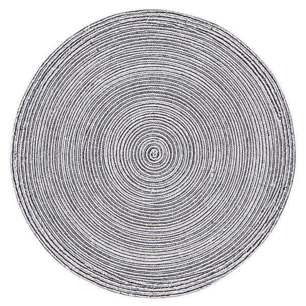 インド綿 ラグマット/絨毯 〔ブラック&ホワイト 直径約160cm 円形〕 綿100% ホットカーペット 床暖房可 ブレイド 〔リビング〕 【北海道・沖縄・離島配送不可】