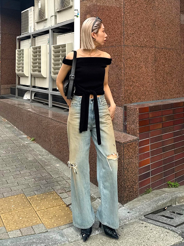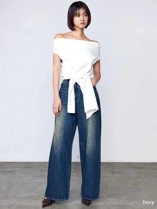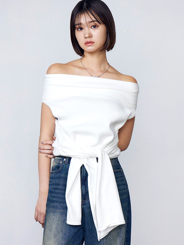 エモダ リボン オフショルダー トップ