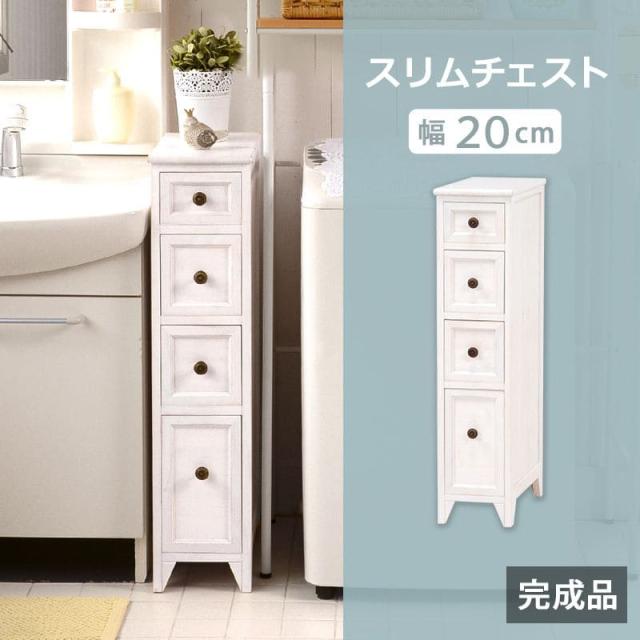 ランドリーチェスト 完成品 薄型 スリム 4段 ランドリー収納 チェスト 隙間 白 幅20 奥行40 隙間収納 おしゃれ 洗面所 木製 引き出し 木目 20cm