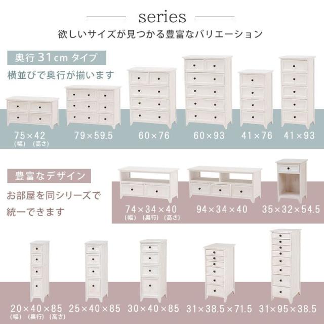アンティーク シャビー 引出し 収納 コンパクト ランドリー 低め 小さめ 大容量 小型 一人暮らし 天然木 ホワイト リビング 洋風