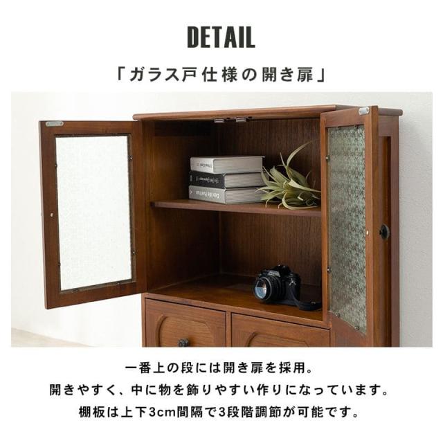 高さ80 ロータイプ 低め コンパクト 木目 アンティーク ガラス扉 木 モダン 低い ロー 脚 棚 和室 寝室 高級 ガラス扉付き 収納棚