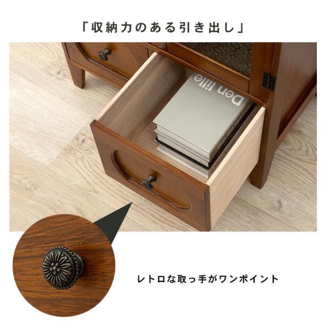キャビネット 完成品 木製 収納 ガラス リビング レトロ 引き出し チェスト 幅60 扉 サイドボード おしゃれ スリム 大容量 薄型 リビングボード 脚付き