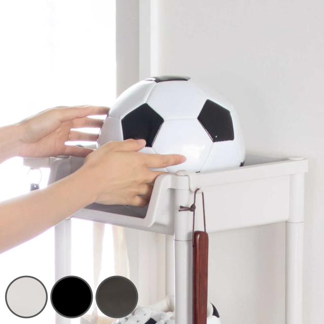 玄関がスッキリと片付くシューズラック追加トレー別売りのシューズラックに取り付けられる追加トレーです。置き場所に困りがちなボールやヘルメットをシューズラックと一緒にスッキリと収納することができます。