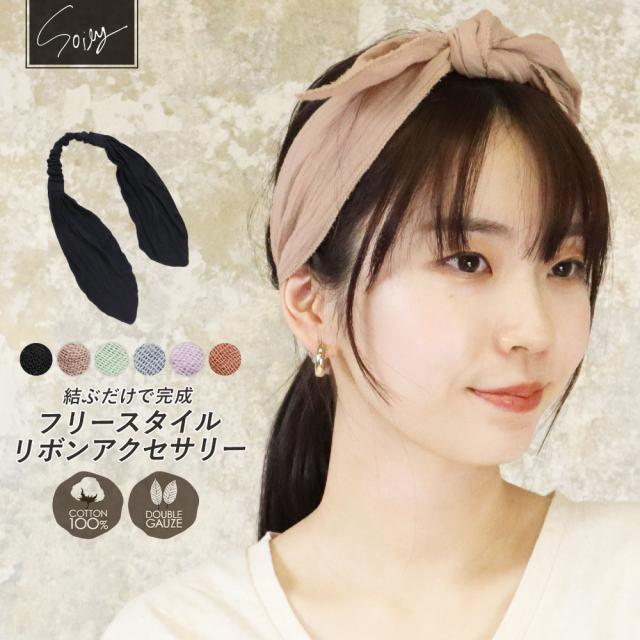 ヘアバンド 綿100% ヘアターバン 結ぶヘアバンド スカーフ 大人 ヘアアクセサリー 綿 レディース 無地 Soily *2-4t *y3-8t