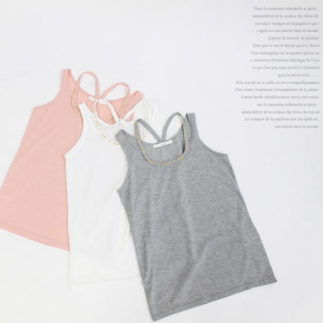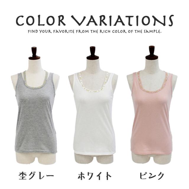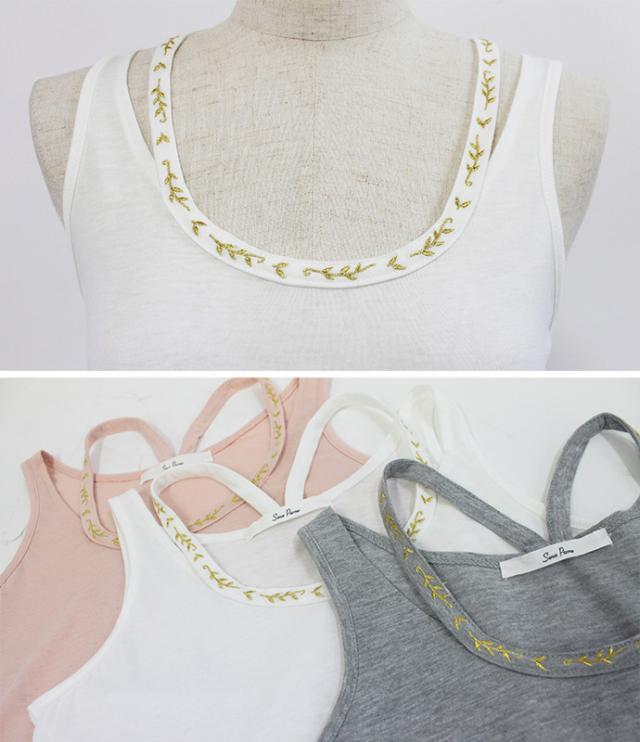 レディース タンクトップ タンク インナー ノースリーブ 刺繍