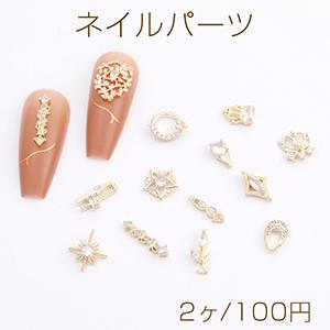 高品質ネイルパーツ メタルネイルパーツ ジルコニア付き 全18種 ゴールド