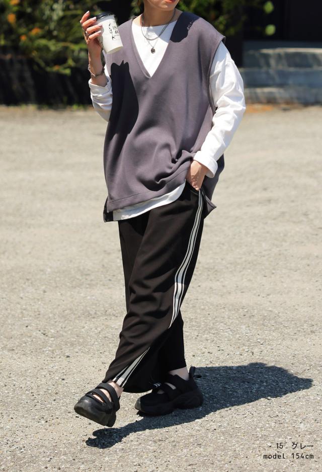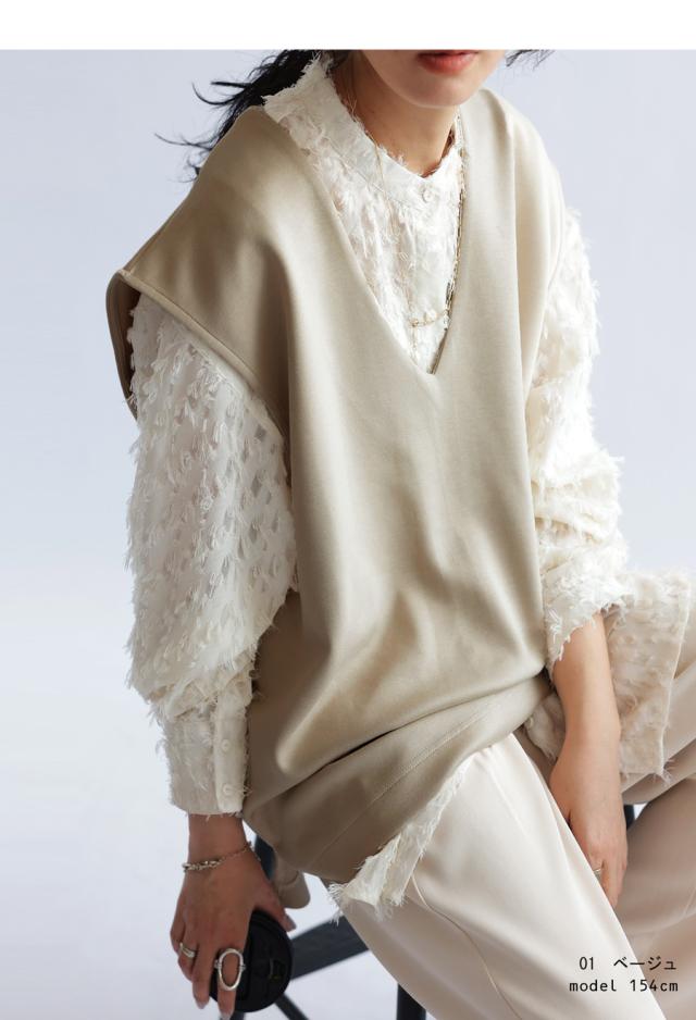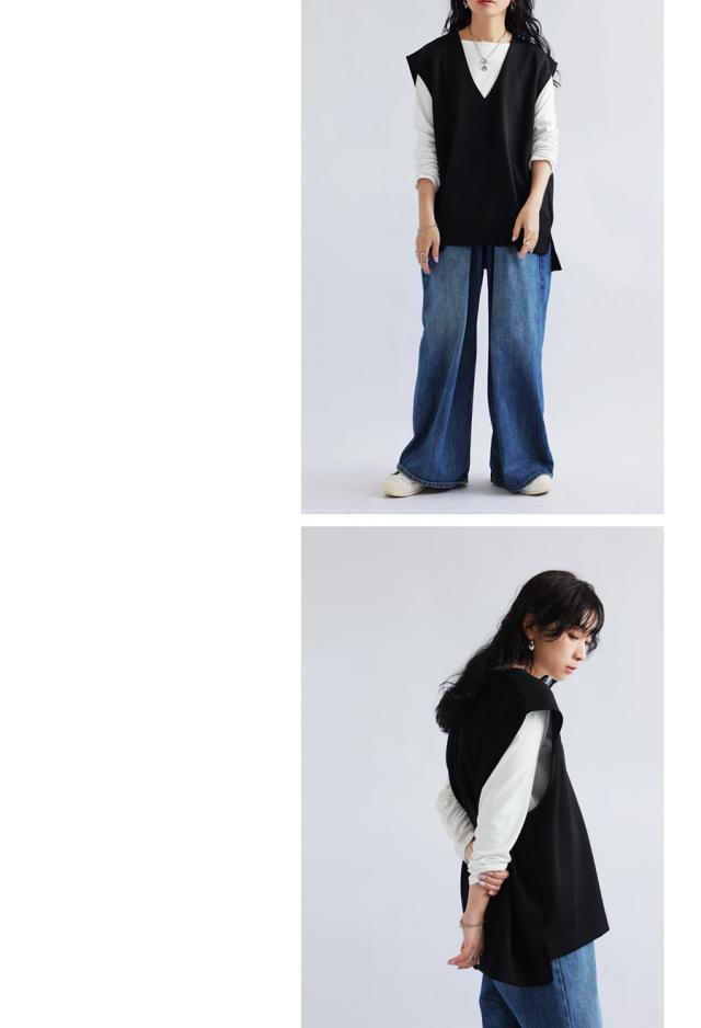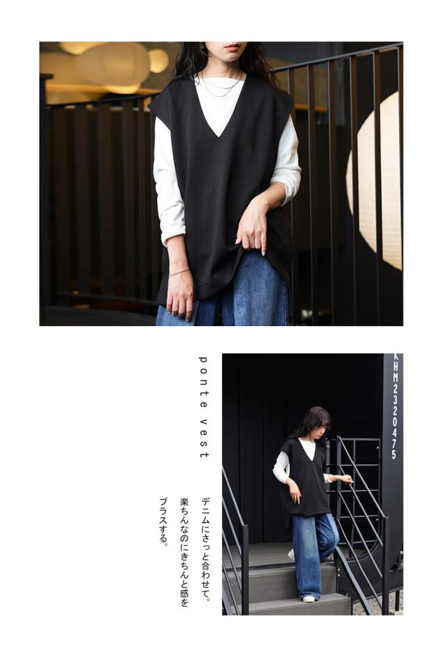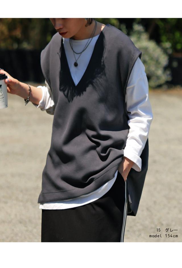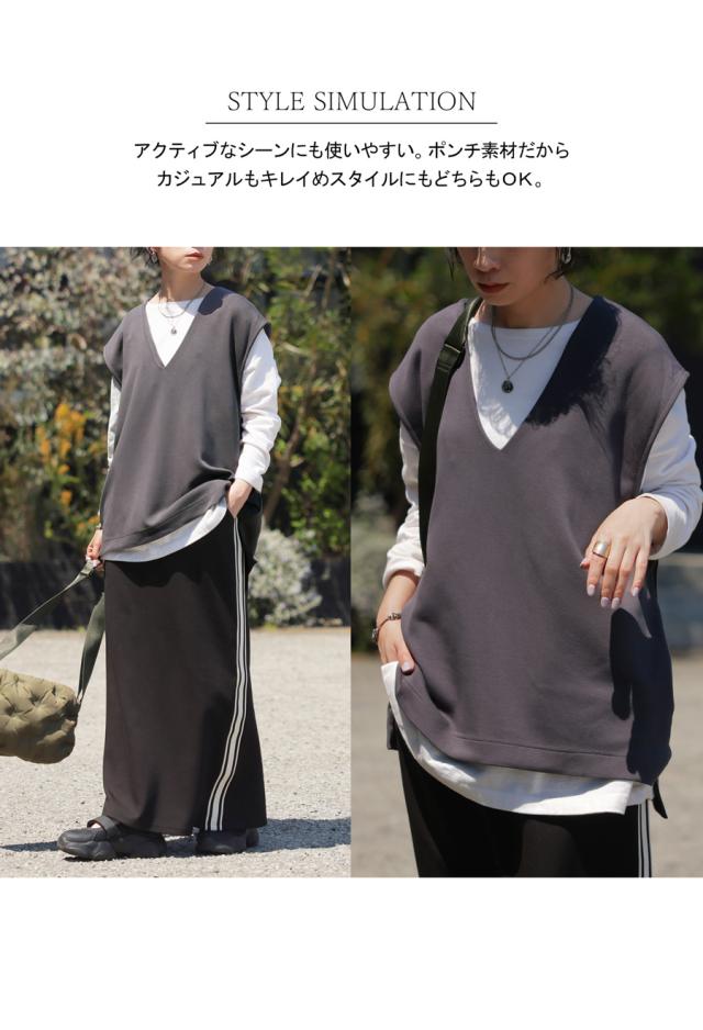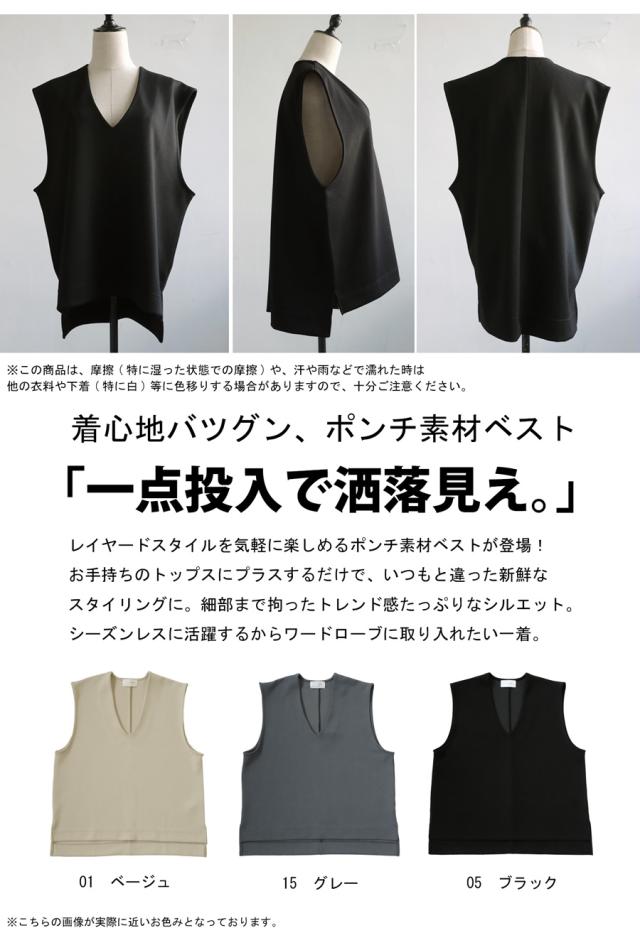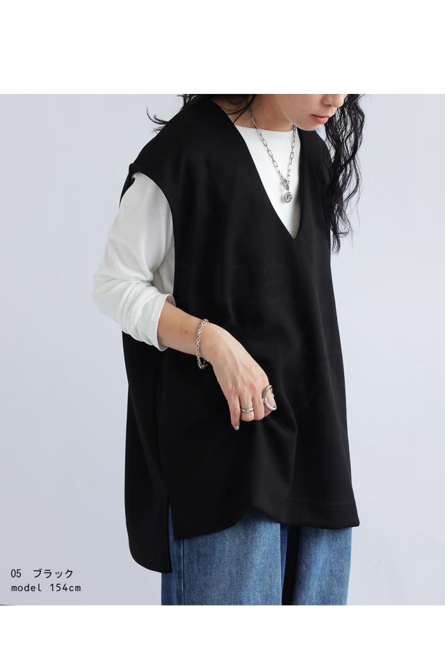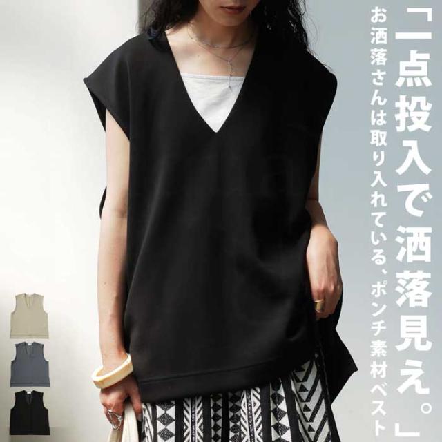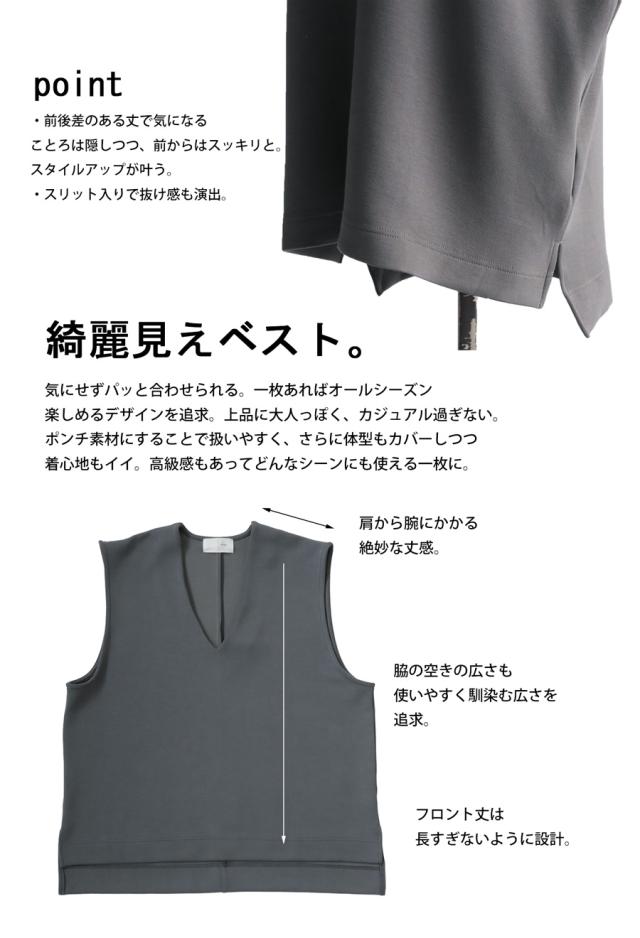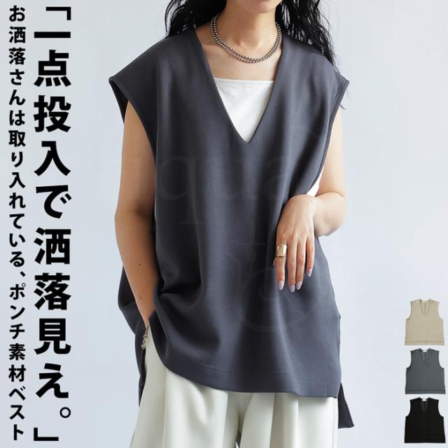 【検索ワード】ポンチベスト ベスト レディース トップス 無地 ゆったり きれいめ ポンチ素材 Vネック シンプル ノースリーブ プルオーバー 伸縮 もっちり ストレッチ レーヨン混 長め丈 前後差 スリット 重ね着 レイヤード 上品 見返し襟 とろみ 落ち感 オーバーサイズ ビッグシルエット 大きいサイズ antiqua アンティカ 大人 おしゃれ 10代 20代 30代 40代 50代 60代 春 夏 秋 冬 オールシーズン お洒落 カジュアル かわいい かっこいい あんてぃか
