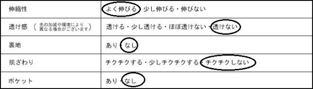 | 素材 | レーヨン55% ポリエステル40% ポリウレタン5% |