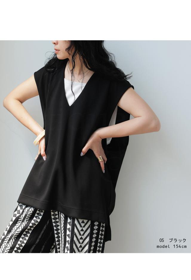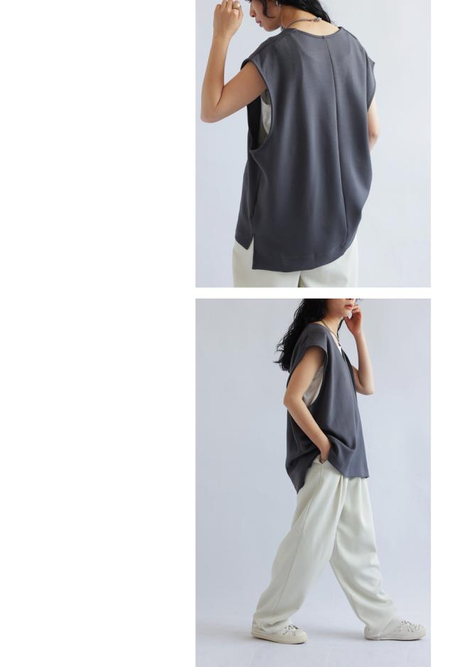 na-00380 ゆったり きれいめ ポンチ素材 シンプル ノースリーブ プルオーバー 伸縮 ストレッチ 長め 前後差 スリット 重ね着 レイヤード とろみ 落ち感 オーバーサイズ 大きいサイズ