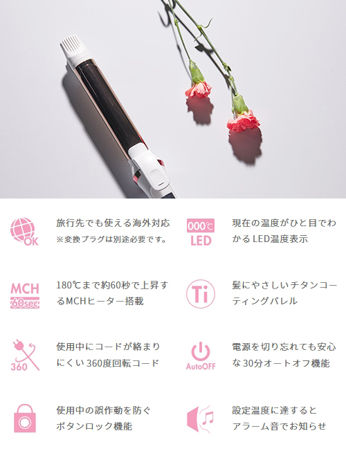 - 180℃まで約60秒!スタイリングの待ち時間短縮!