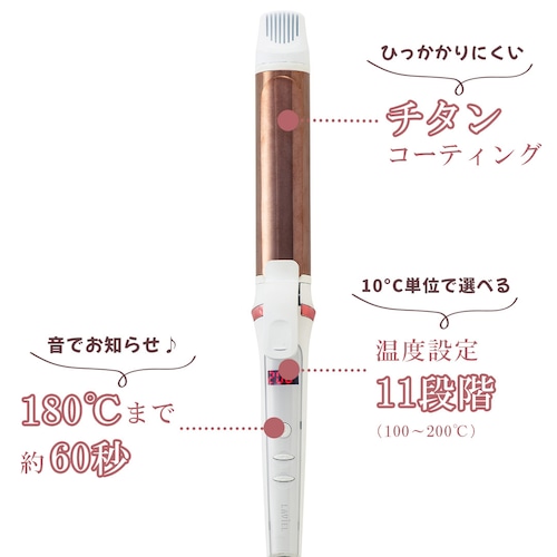 - 摩擦が少なく、髪にやさしいチタンコーティングバレル