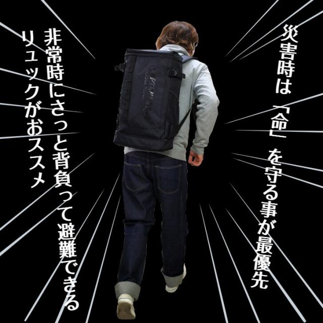 大人気のアウトドアブランドCAPTAIN STAG(キャプテンスタッグ)のスクエアリュックに、災害時に役立つ基本的な防災グッズをセットした一人用の避難セットです。