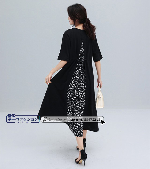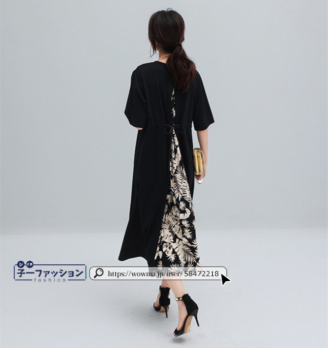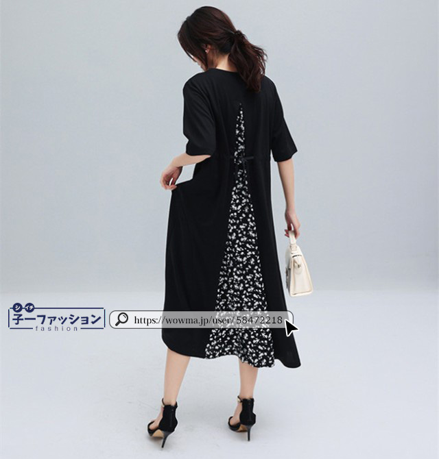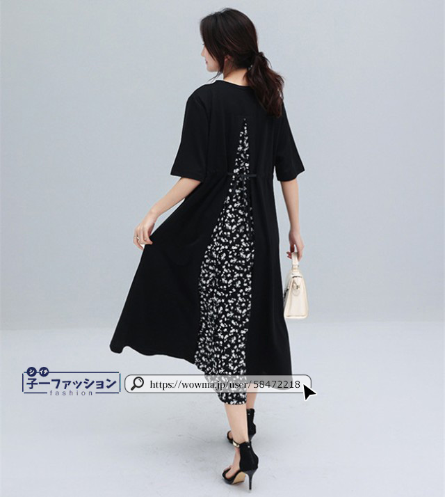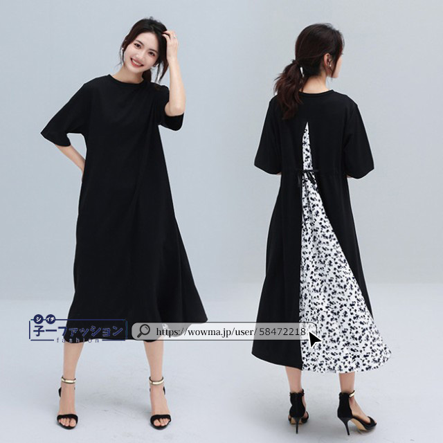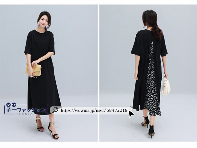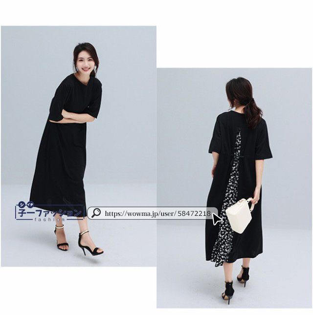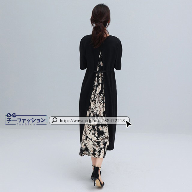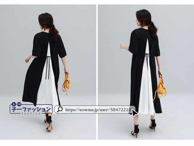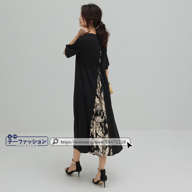 レイヤードワンピース マキシ丈ワンピース 冬新作 新作 異素材 ワンピ ロング丈 Tシャツワンピース レディース ラウンドネック 無地 カーキ ピンク ホワイト スリット入り 秋服 秋冬