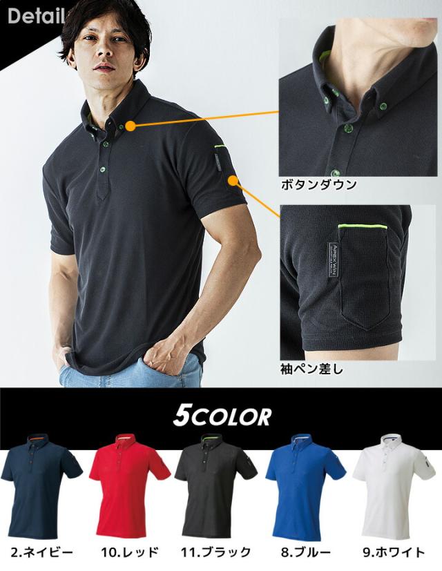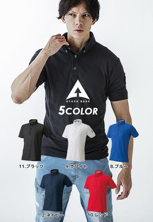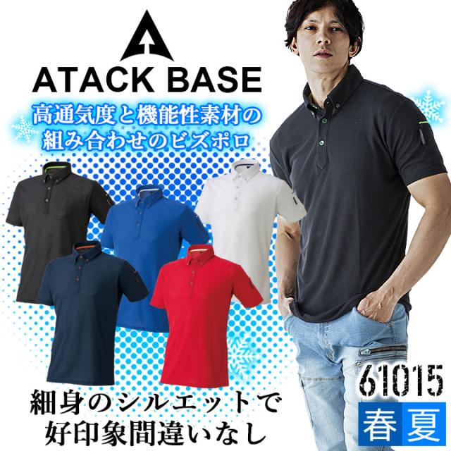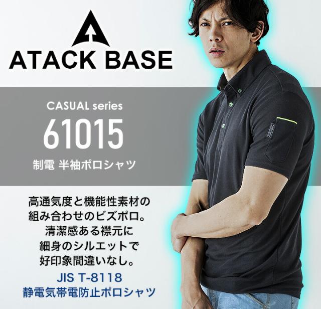 半袖ポロシャツ メンズ 通気性 吸汗速乾 制電 静電気 帯電防止 アタックベース 61015 清涼感 春夏 作業服 作業着 ユニフォーム【送料無料】